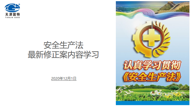 天津固特注重安全管理,堅持抓好安全宣傳教育工作。近日,天津固特組織開展安全活動,對2020年《安全生產法》最新修正案內容組織公司人員開展學習和宣貫。學習活動是將安全生產法最新修正案前后對照條文內容進行PPT展示宣貫,目的在于加強公司全員對《安全生產法》法律條文的學習和理解,加深對公司全員安全工作落實的執行力和責任感。